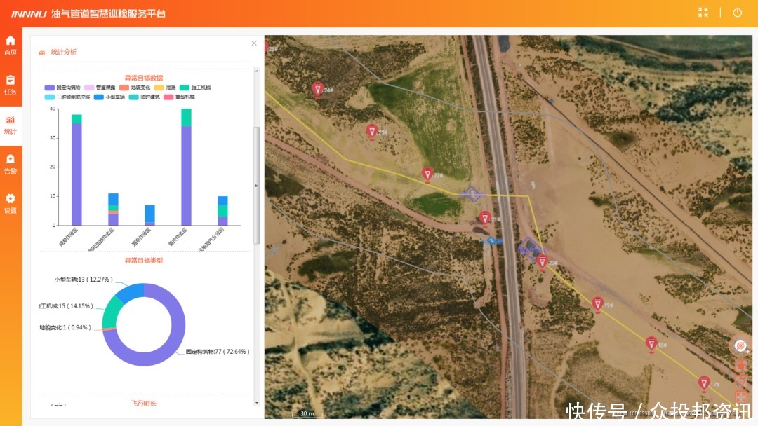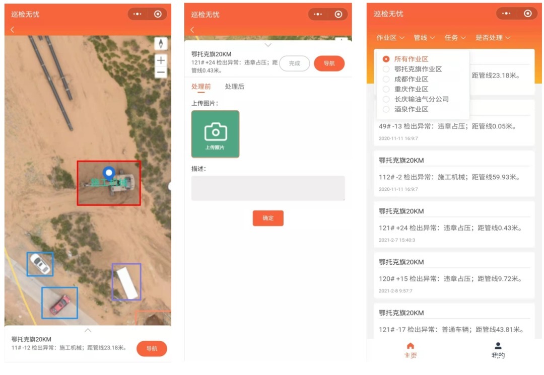 目前无人机管道巡检有两大难点:一是无人机大收集的数据量需要人工分析。二是无人机巡检数据难以与管道业务管理平台和一线巡检人员快速交互。