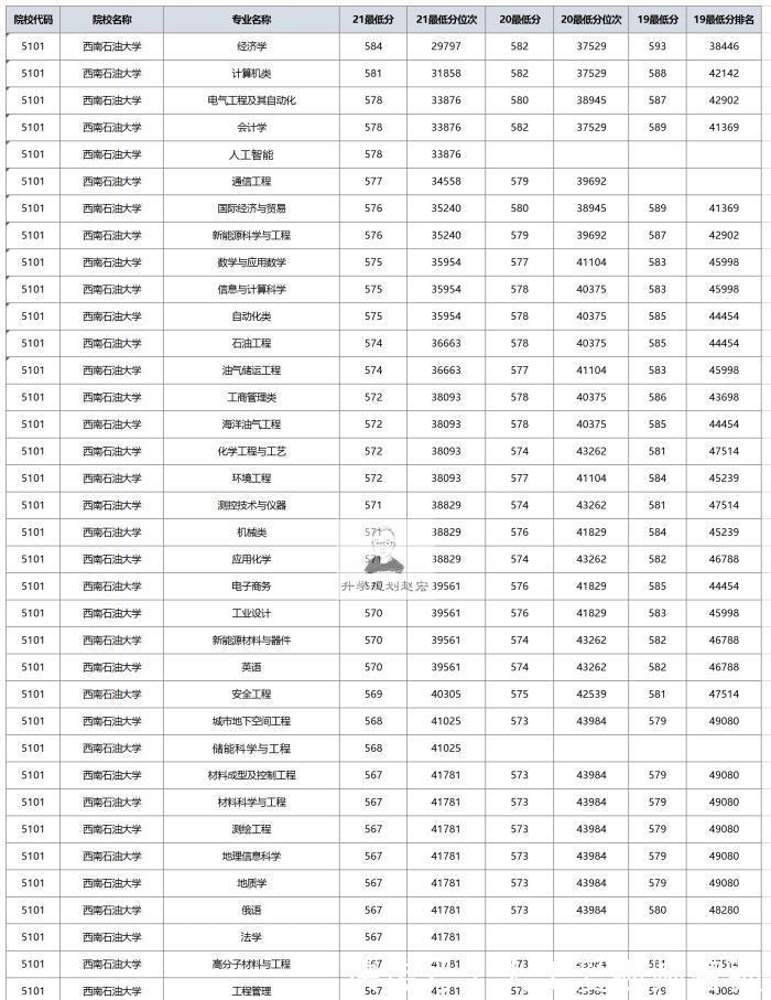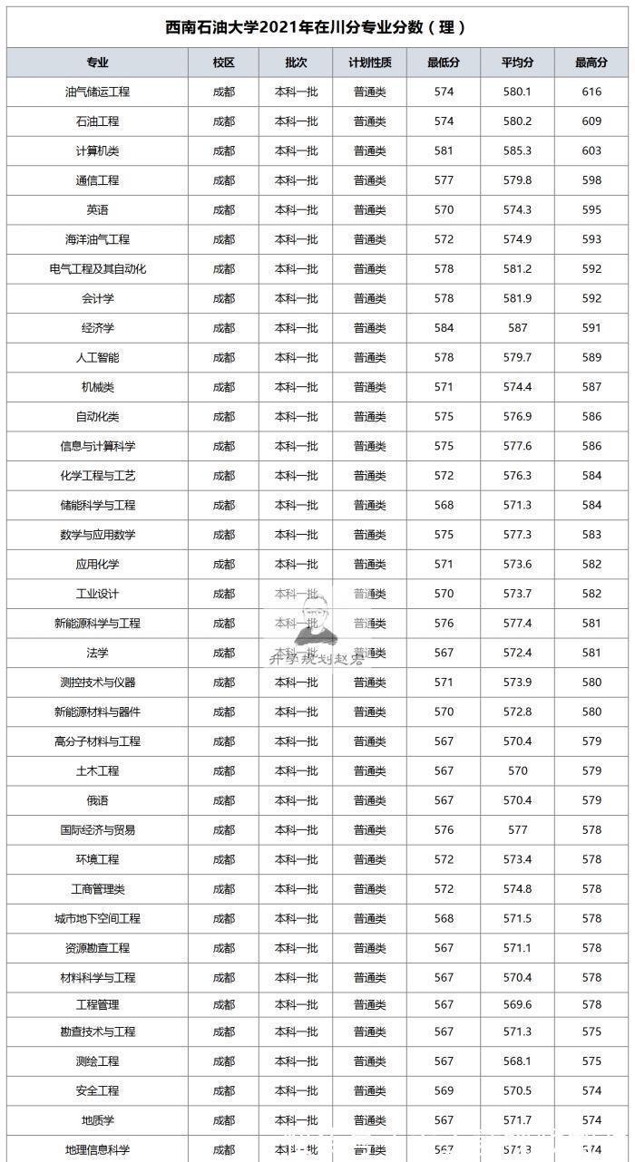 2021年川内大学的专业分数大体上公布了,前面提到了成都理工大学、西南医科大学、川北医学院等学院的分数,在这里我们就来看看西南石油大学2021年四川的专业录取分数线,最高分数为616分,燃气储运工程专业,级别调整分数最高584分,经济学专业为;具体看以下。