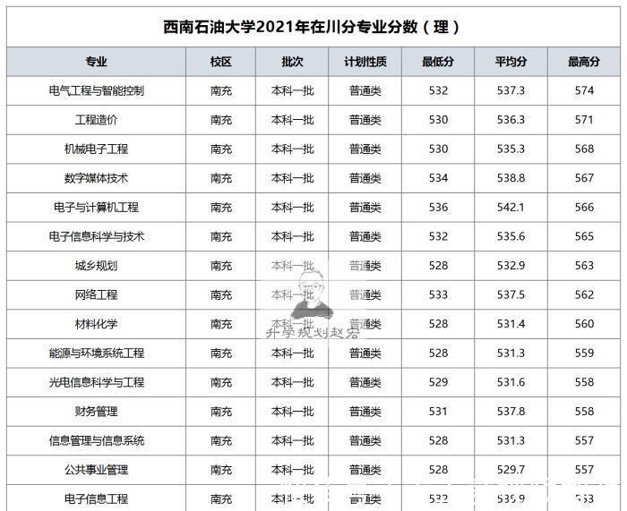 接下来看看南充校区的采用变化,最高574分,排名36663名,电气工程和智能控制专业;2020年最高598分,排名27403名,虽然理科的最高分数下降了,但是和成都校区的最高分数差还是很大的,调整线的分数最高的是536分,是电子和计算机工程专业,最低528分,座位76005名,酒店管理等多个专业;与2020年531分相比,排名79450名,上升了3445名,两个校园的合格点上升了,下一年会更受关注。