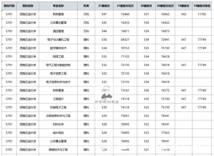 首先来看成都校区录取分数线的变化,理科最高616分,油气储运工程专业,其次是石油工程和计算机类专业,轮班分数最高的是经济学专业的584分,其次是计算机类的581分,最高分数都是学校的优势专业,排名最高的是受欢迎的专业,最低567分,座位顺序41781名,2020年最低573分,座位顺序43984名,名次上升了2203名。